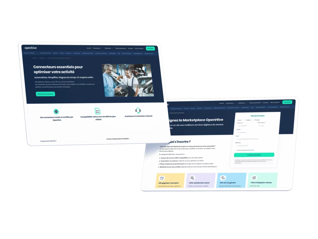 OpenHive est une marketplace B2B pensée pour les distributeurs et partenaires du secteur automobile. En tant qu’agence UX et stratégie digitale, nous avons accompagné Bee2link dans la conception complète de la plateforme : cadrage, recherche, design UX/UI, UI Kit. Un projet complexe, co-construit avec les utilisateurs finaux pour garantir pertinence métier, simplicité d’activation et cohérence dans l’écosystème digital des concessions.